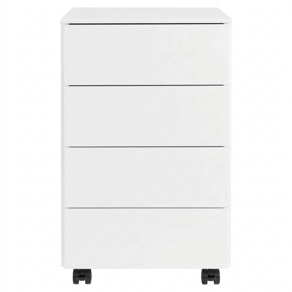 Metallschubladenschrank mit robustem Design, ideal für die Aufbewahrung im Büro oder Arbeitszimmer. Dieser Rollcontainer bietet mit seinen 4 Schubladen und einem herausnehmbaren Tablett ausreichend Platz zur Organisation. Die oberste Schublade verfügt über ein Schloss zum Schutz wichtiger Dokumente und beinhaltet vier Schlüssel. Ausgestattet mit vier 360-Grad-Rollen, von denen zwei feststellbar sind, ermöglicht er eine flexible Positionierung. Die Schubladen mit kugelgelagerten Führungen bieten einen einfachen Zugriff. Er wird fast vollständig montiert geliefert, Räder müssen angebracht werden.